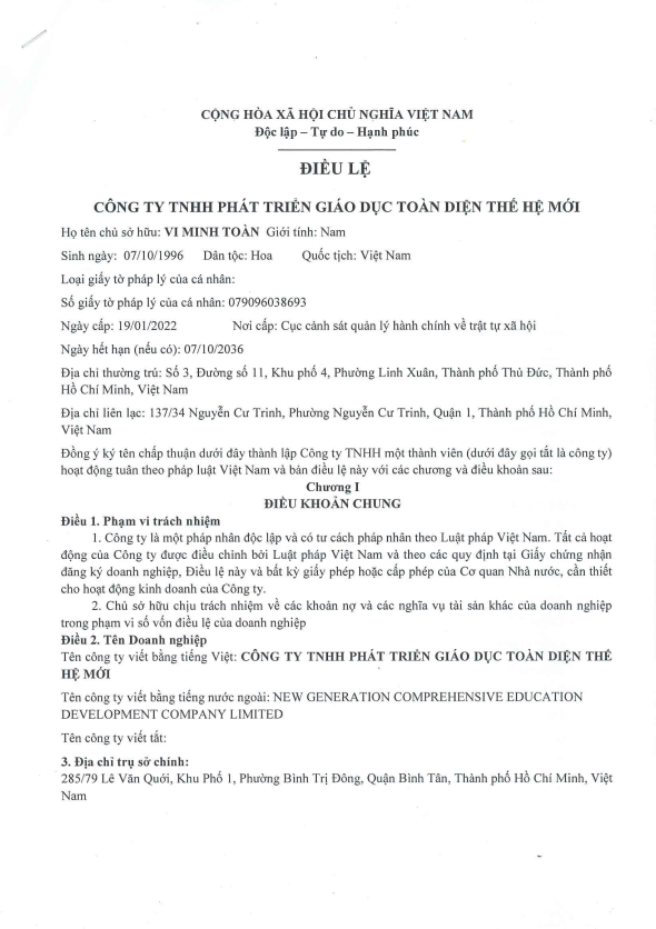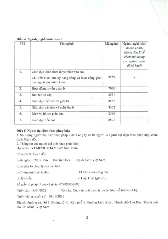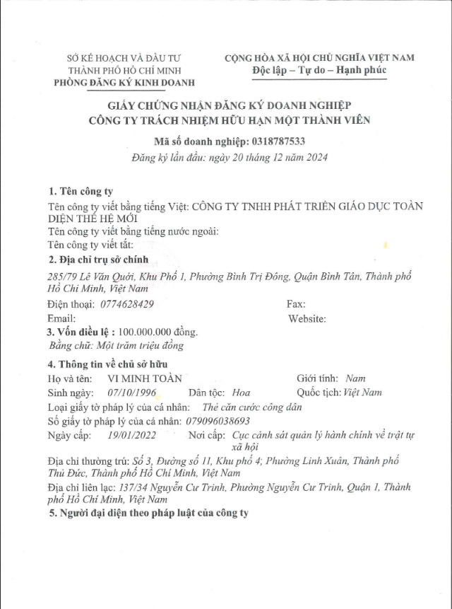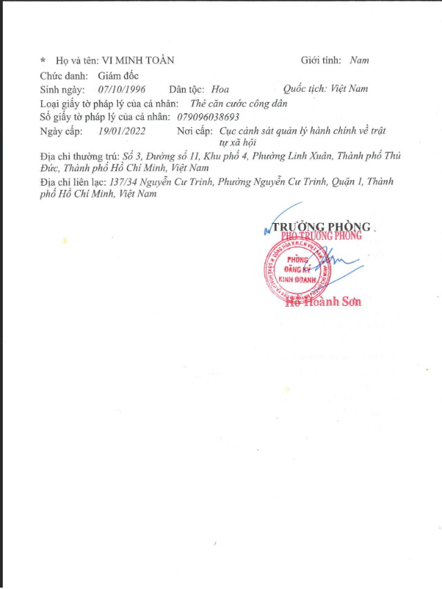 GIẤY CHỨNG NHẬN ĐĂNG KÝ DOANH NGHIỆP
