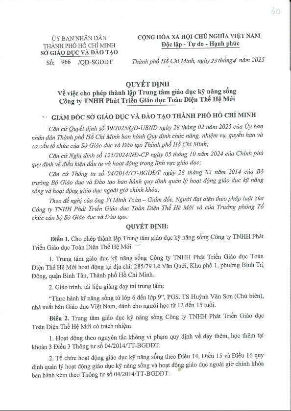 QUYẾT ĐỊNH THÀNH LẬP TRUNG TÂM
